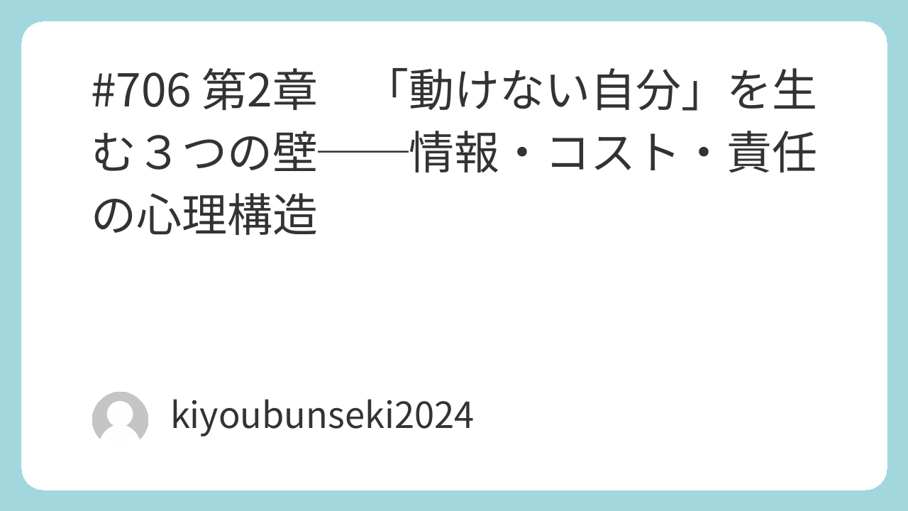 本章では、行動を止める3つの壁――情報不足・行動コスト・責任回避――を明確に言語化し、