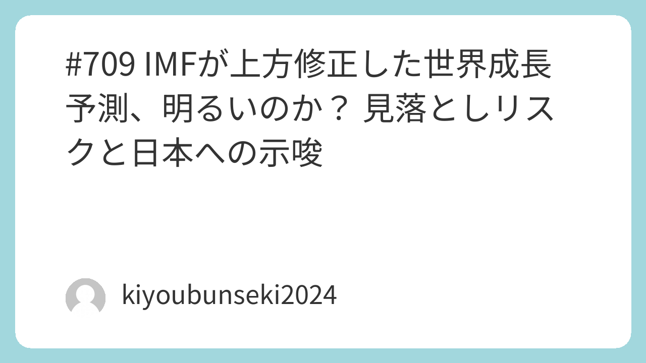報道では「世界経済が底堅い」とポジティブな印象を与えていますが、果たして本当に明るいのか――。今回は、上方修正の背景と、見落としがちなリスク、そして日本への示唆を整理します。